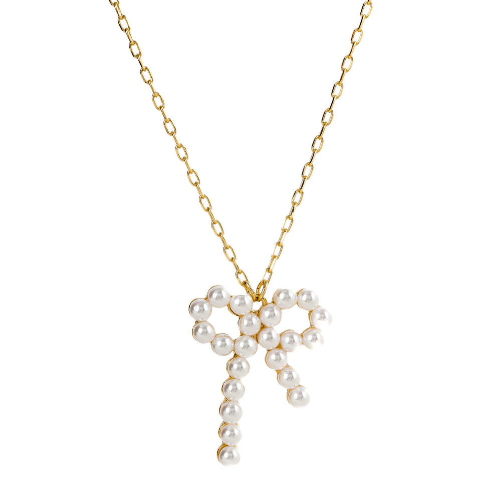 PEARL PAVE BOWKNOT PENDANT CHAIN NECKLACE