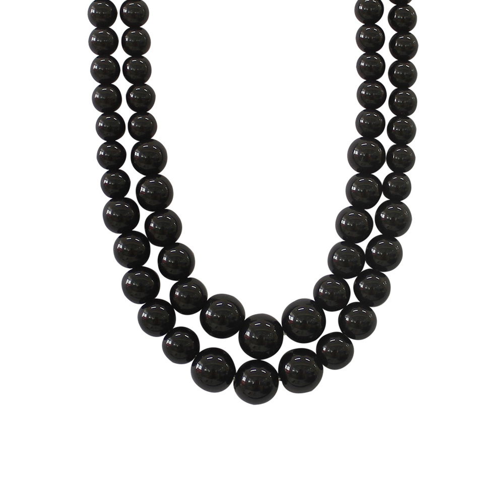 DUAL STRAND PEARL BEADED NECKLACE AVAILABLE IN PEARLESCENT WHITE BLACK ONYX FINISHES