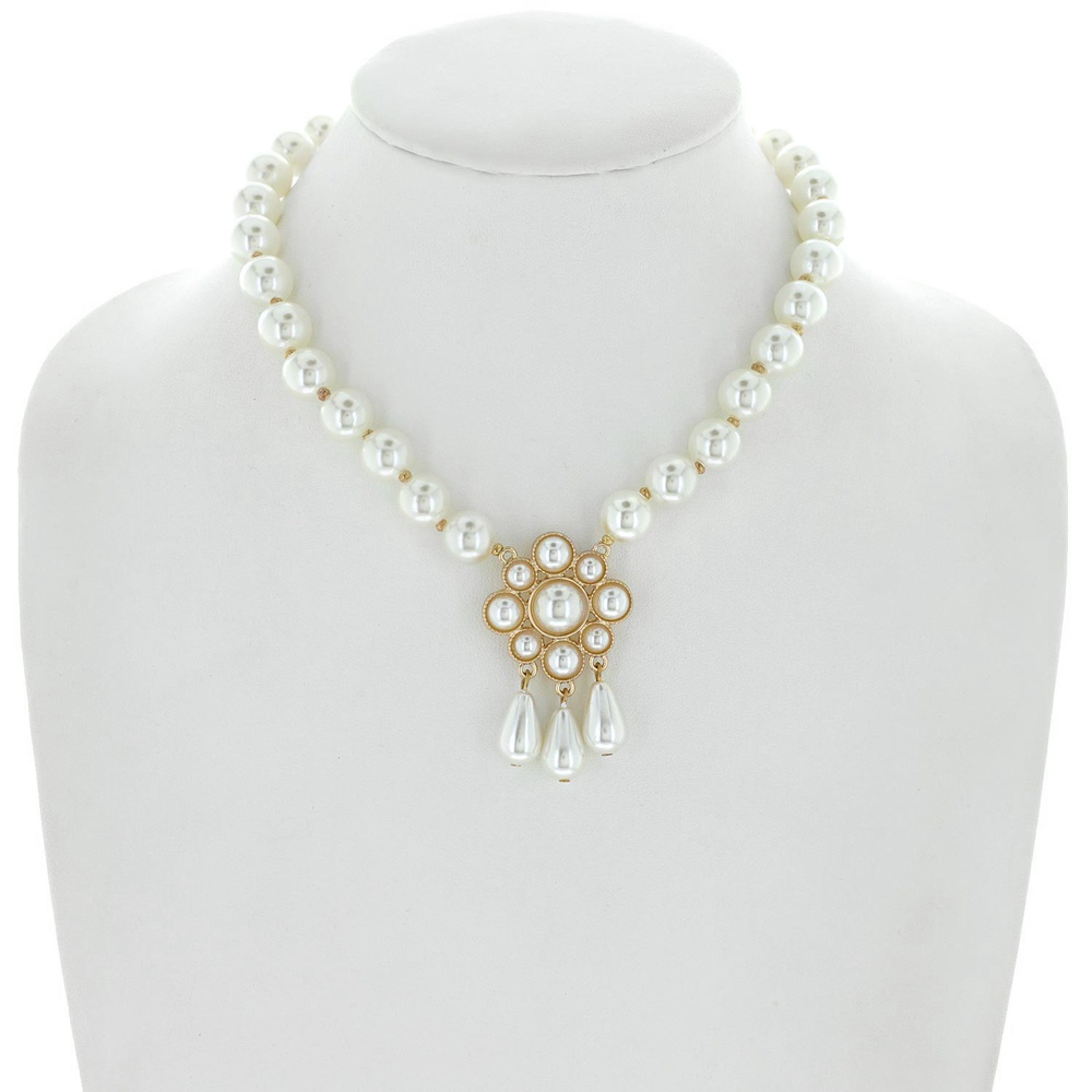 Floral Teardrop Pearl Fringe Adjustable Necklace