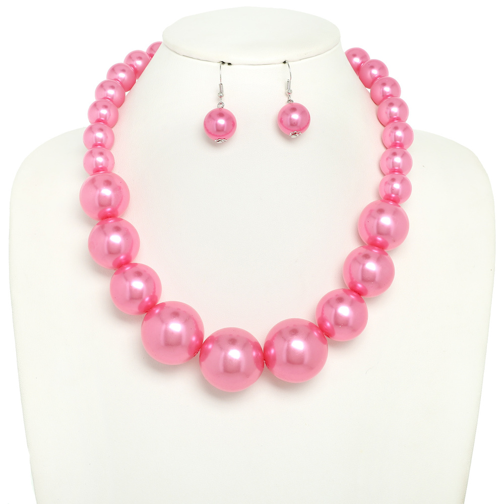 SYNTHETIC PEARL LARGE BEAD STATEMENT NECKLACE EARRING SET