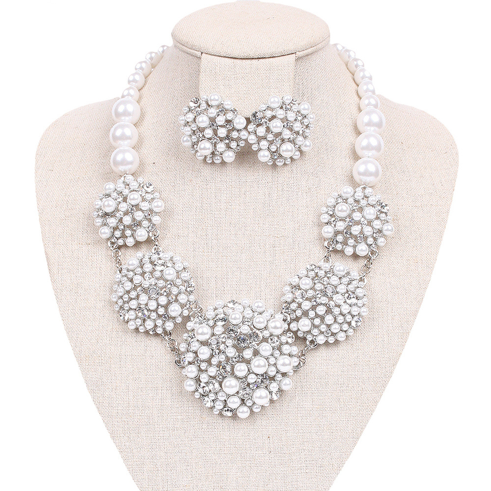 5 RND PEARL CLUSTER NECKLACE AND EARRINGS SET