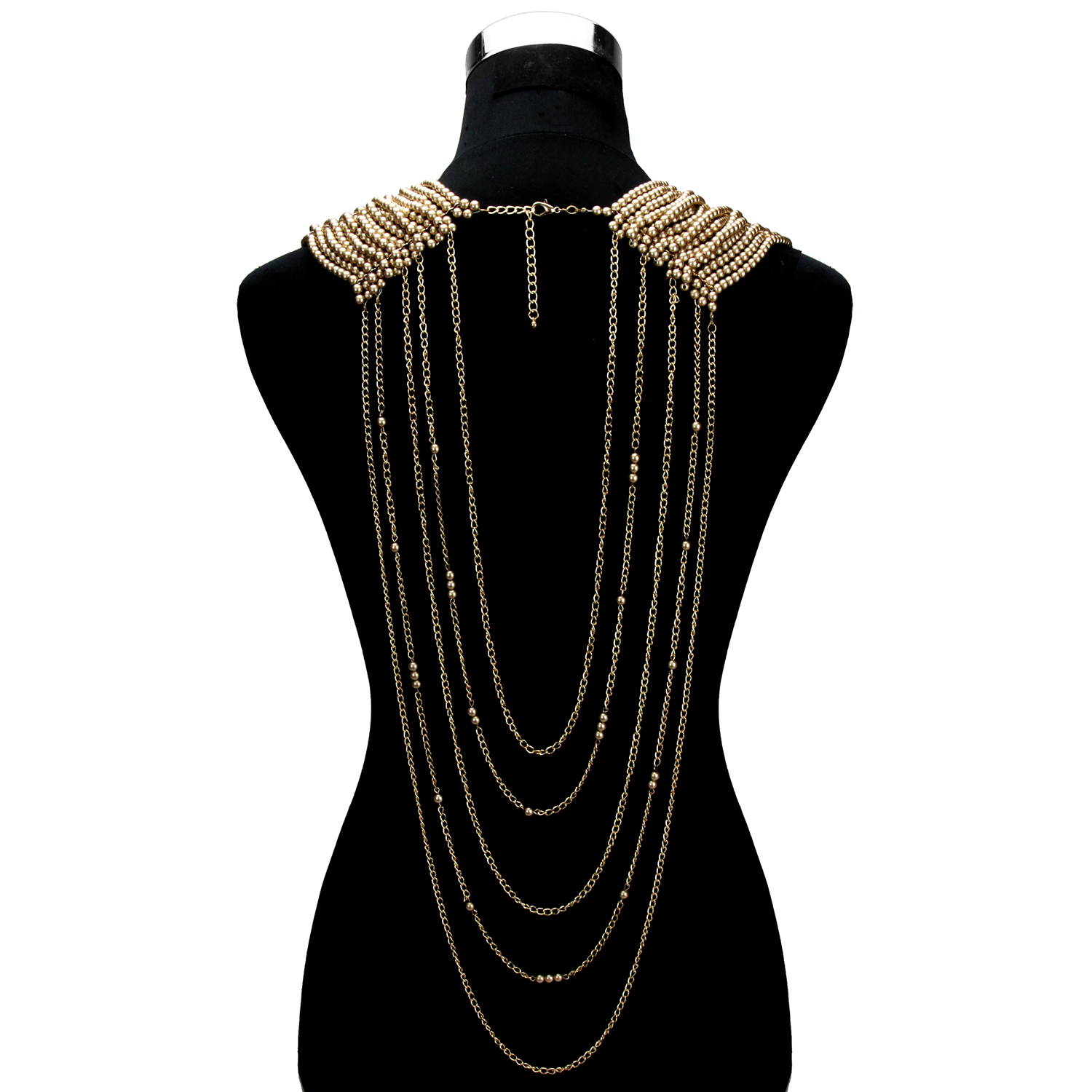 Gold Elegant Multi Layer Pearl Necklace With Back Chain