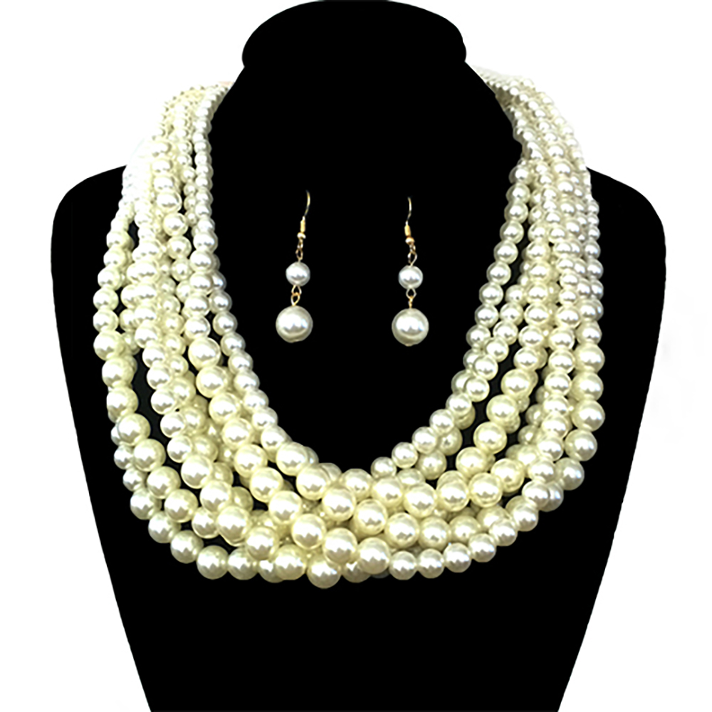 Multi Layered Pearl Strands Chunky Necklace And Earrings Set Npy063gcr