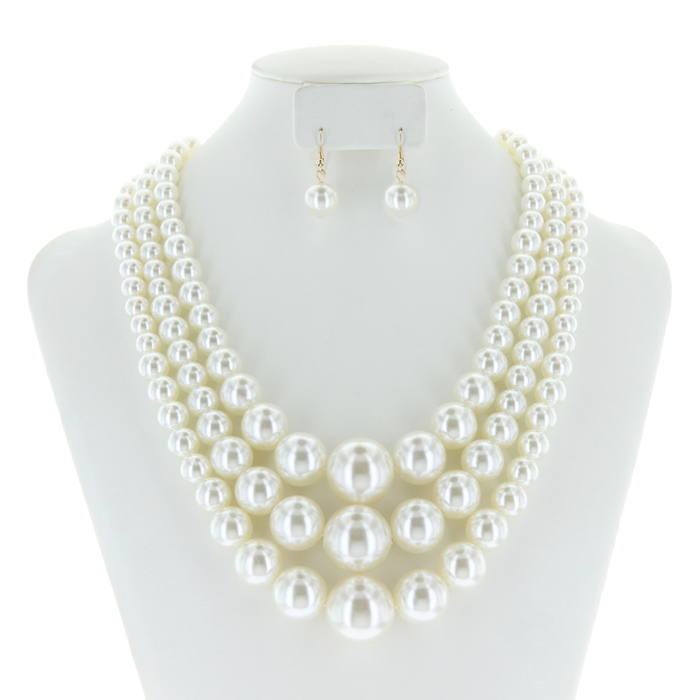 Multi Layered Pearl Strands Chunky Necklace and Earrings Set