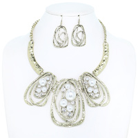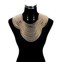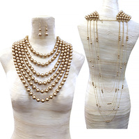 CLASSIC MULTISTRAND LONG PEARL ADJUSTABLE NECKLACE EARRING SET