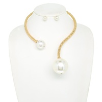 Classic Multistrand Long Pearl Adjustable Necklace Earring Set