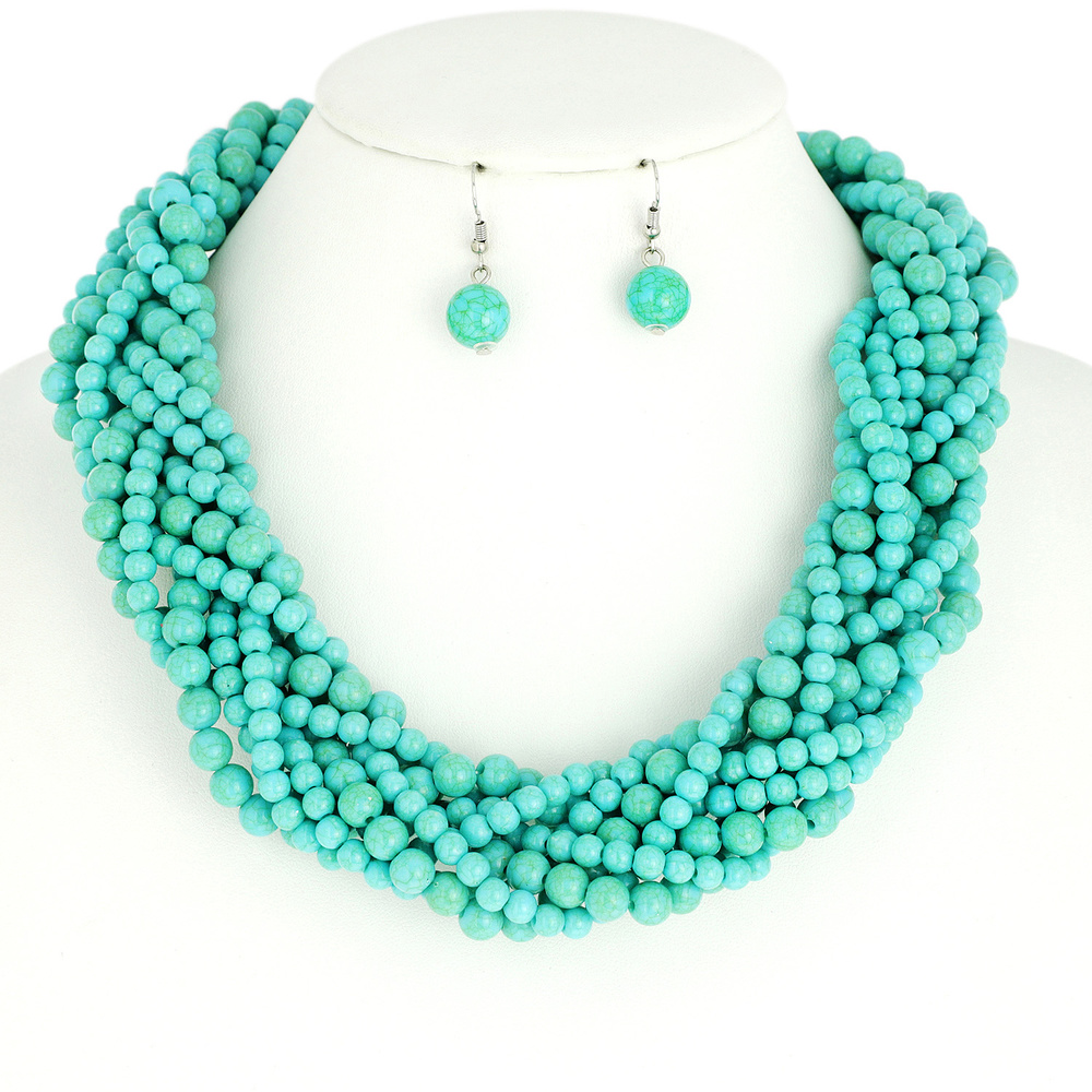 THICK PEARL TWISTED NECKLACE AND EARRING SET