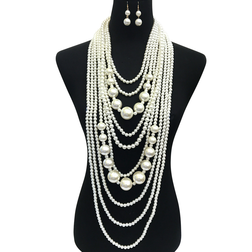 Chunky Multi Layer Drapey Pearl Necklace Set