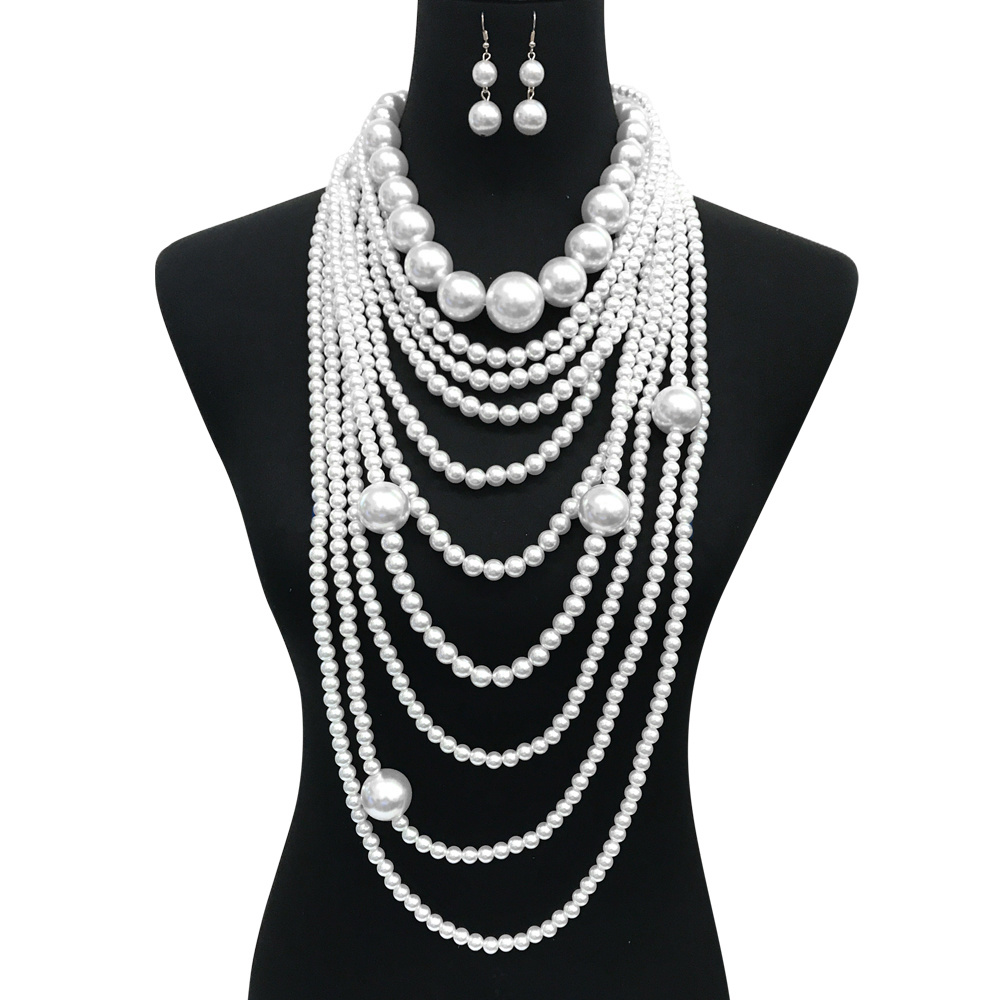 CHUNKY MULTI LAYER DRAPEY PEARL NECKLACE SET