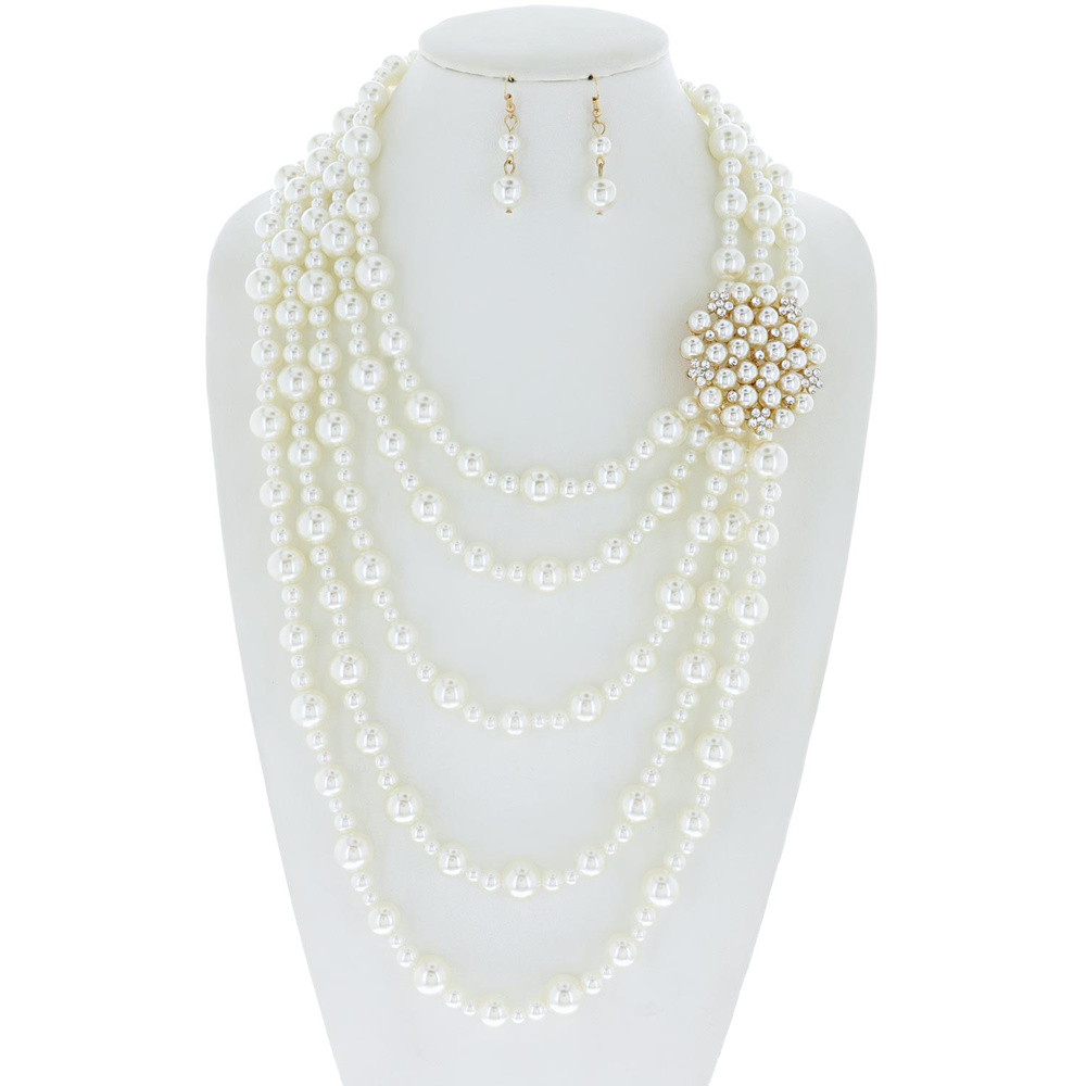 CREAM NECKLACE SET W/BROOCH ON SIDE