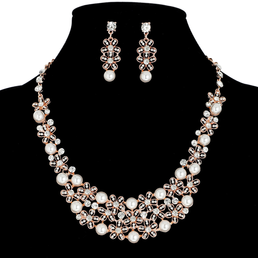 Pearl Cluster Collar Necklace And Earrings Set