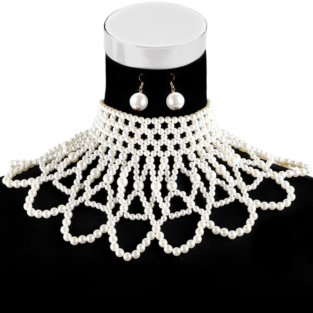 Pearl Armor Bib Statement Choker Necklace And Earring Set