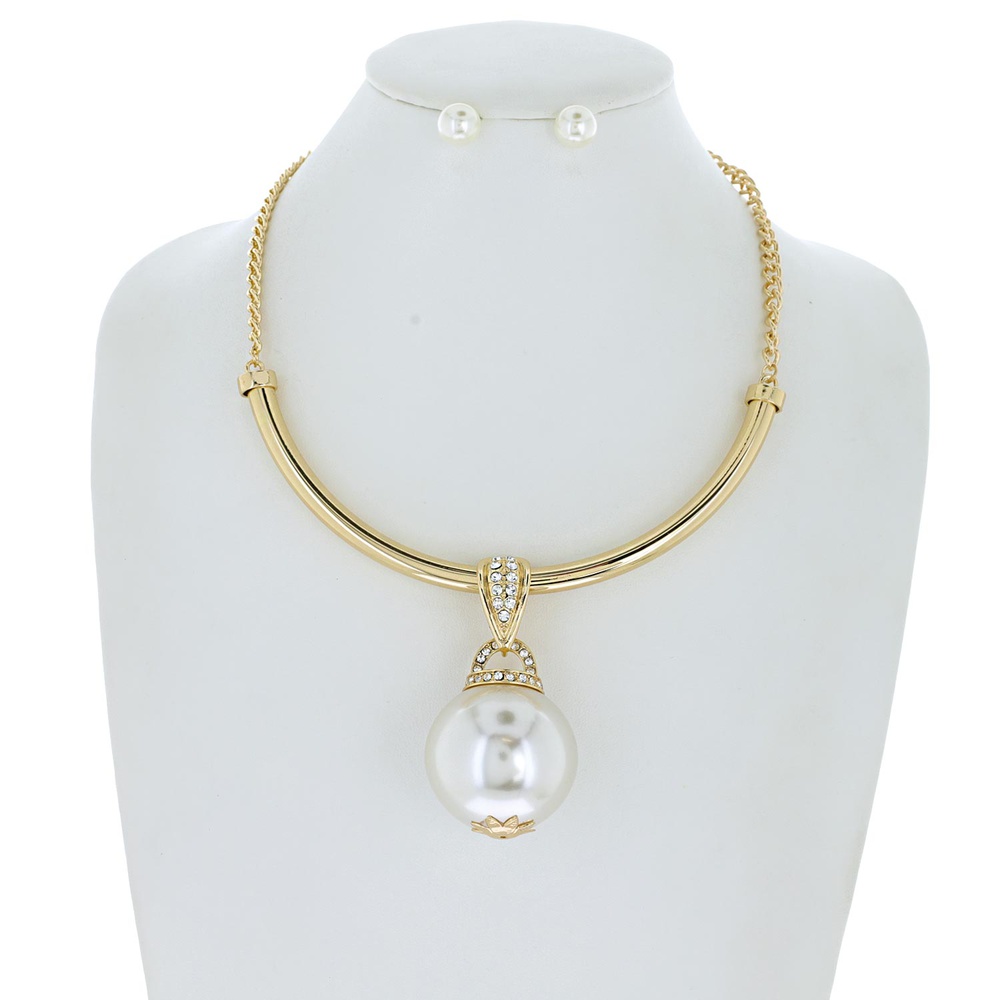 NECKLACE SET W/ LRG PEARL PENDANT