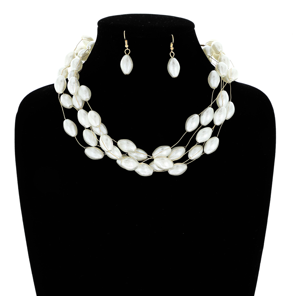 MOTHER OF PEARL MULTI STRAND ILLUSION CORD ADJUSTABLE NECKLACE EARRING SET IN GOLD TONE METAL