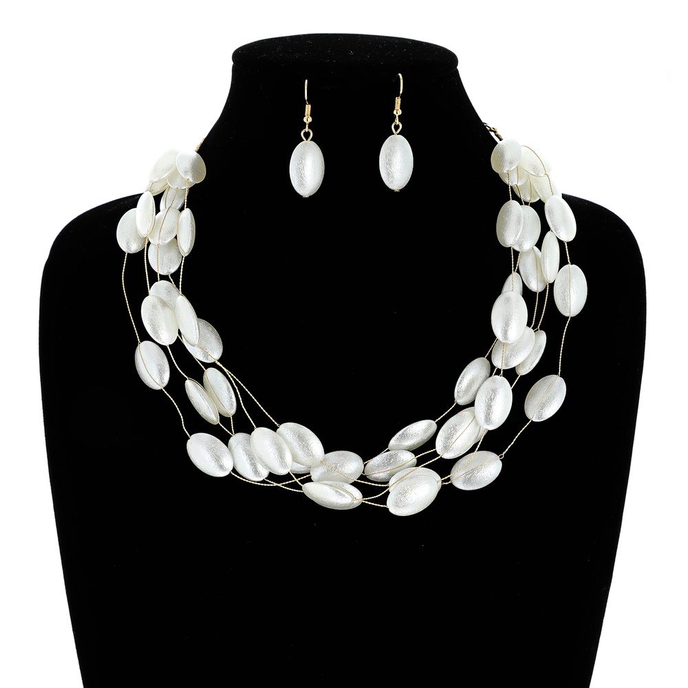 Mother Of Pearl Multi Strand Illusion Cord Adjustable Necklace Earring Set