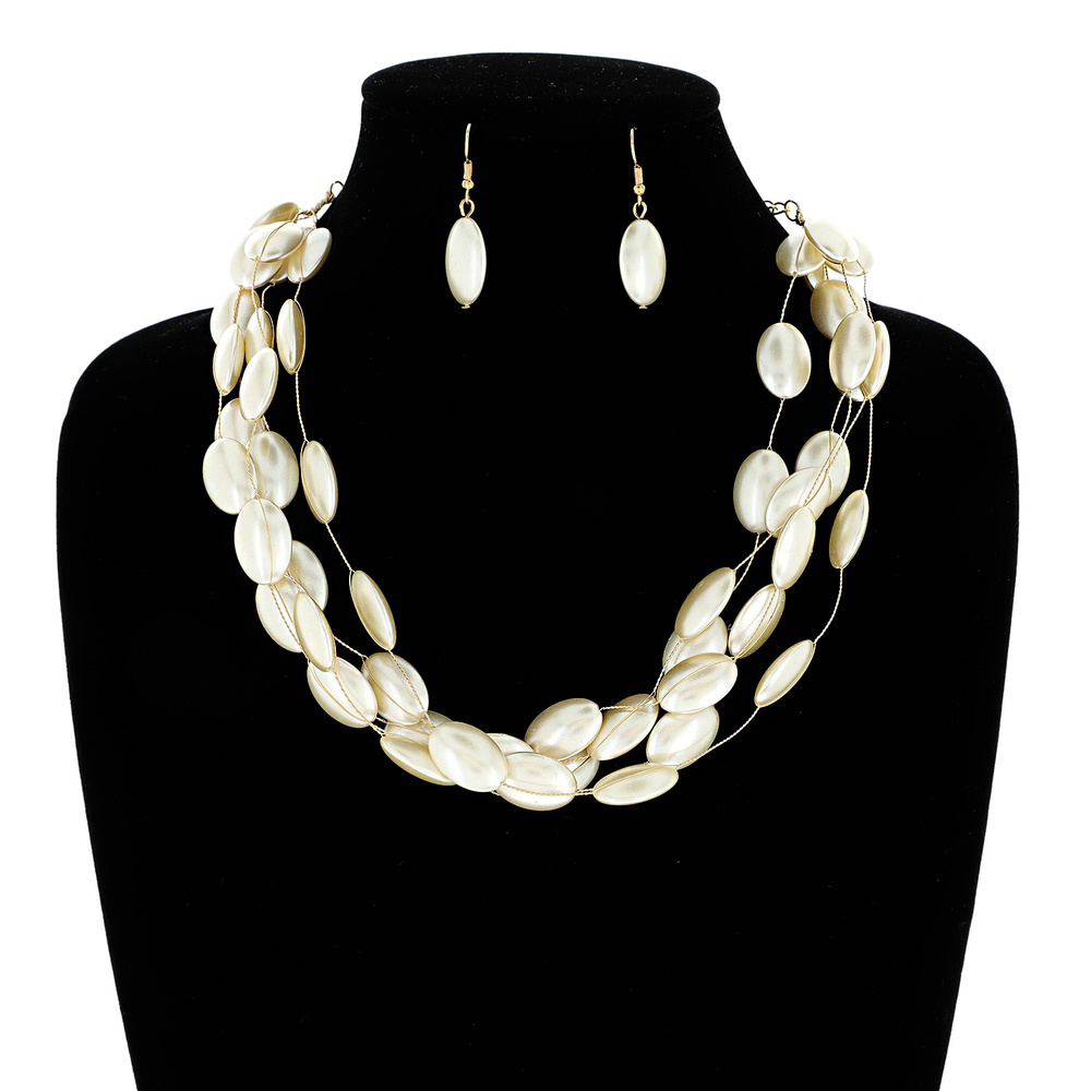 Mother Of Pearl Multi Strand Illusion Cord Adjustable Necklace Earring Set