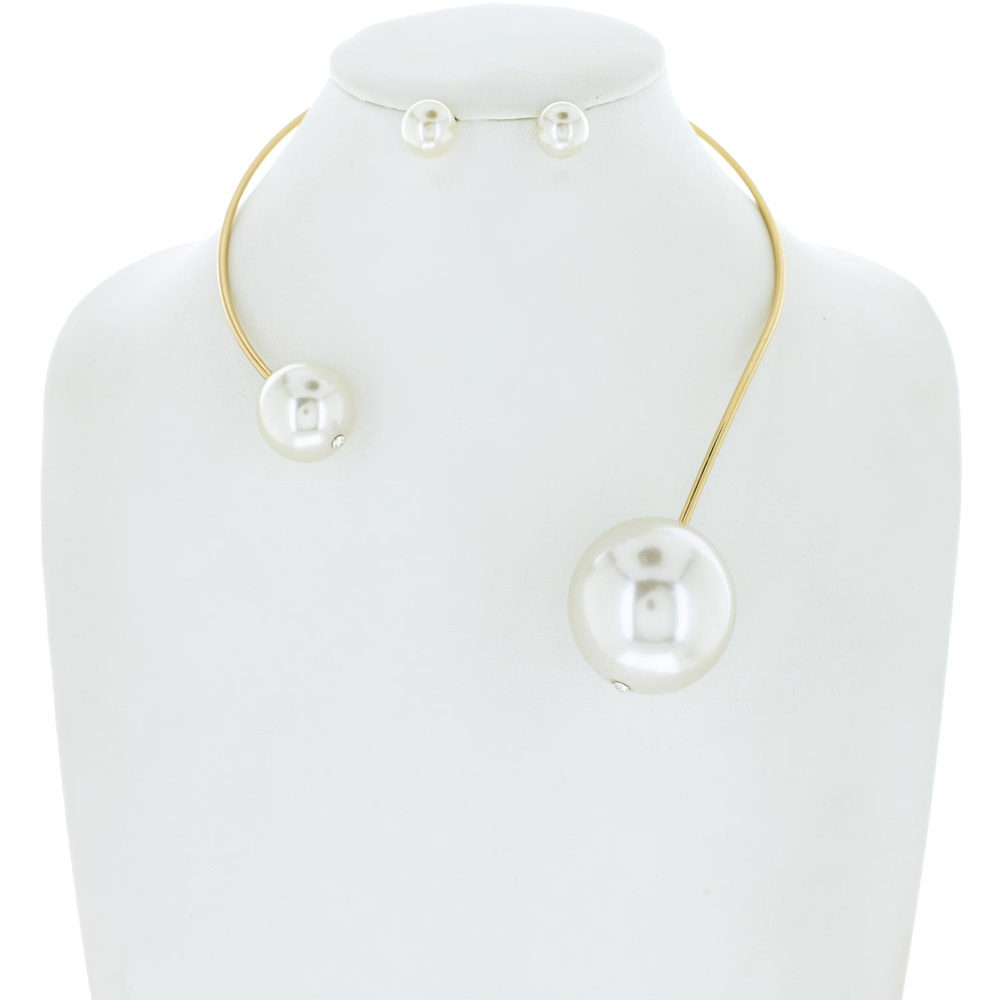 METAL NECKLACE SET W/ 2 LRG PEARLS