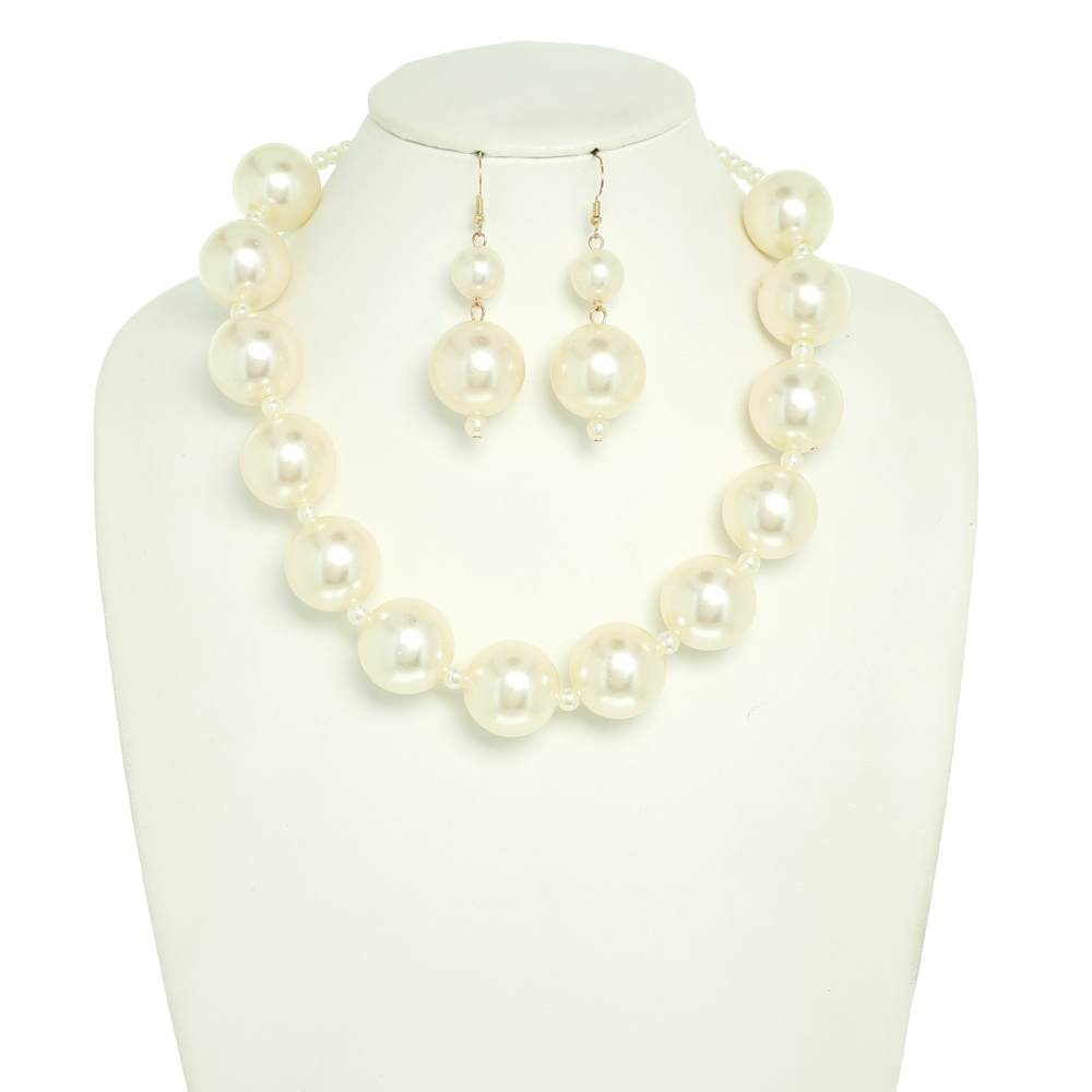 LARGE SIMULATED COLORED PEARL BEADED ADJUSTABLE NECKLACE EARRING SET