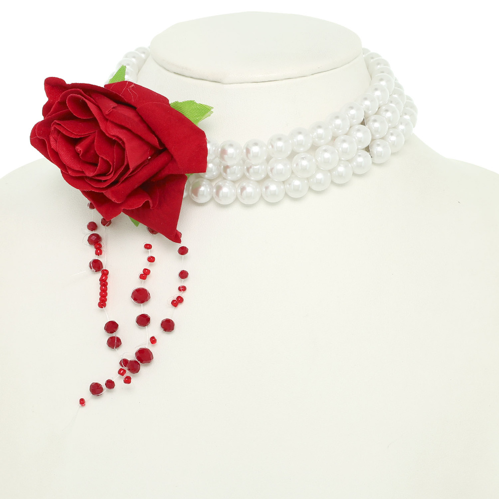 MULTI STRAND PEARL CHOKER NECKLACE WITH FABRIC ROSE