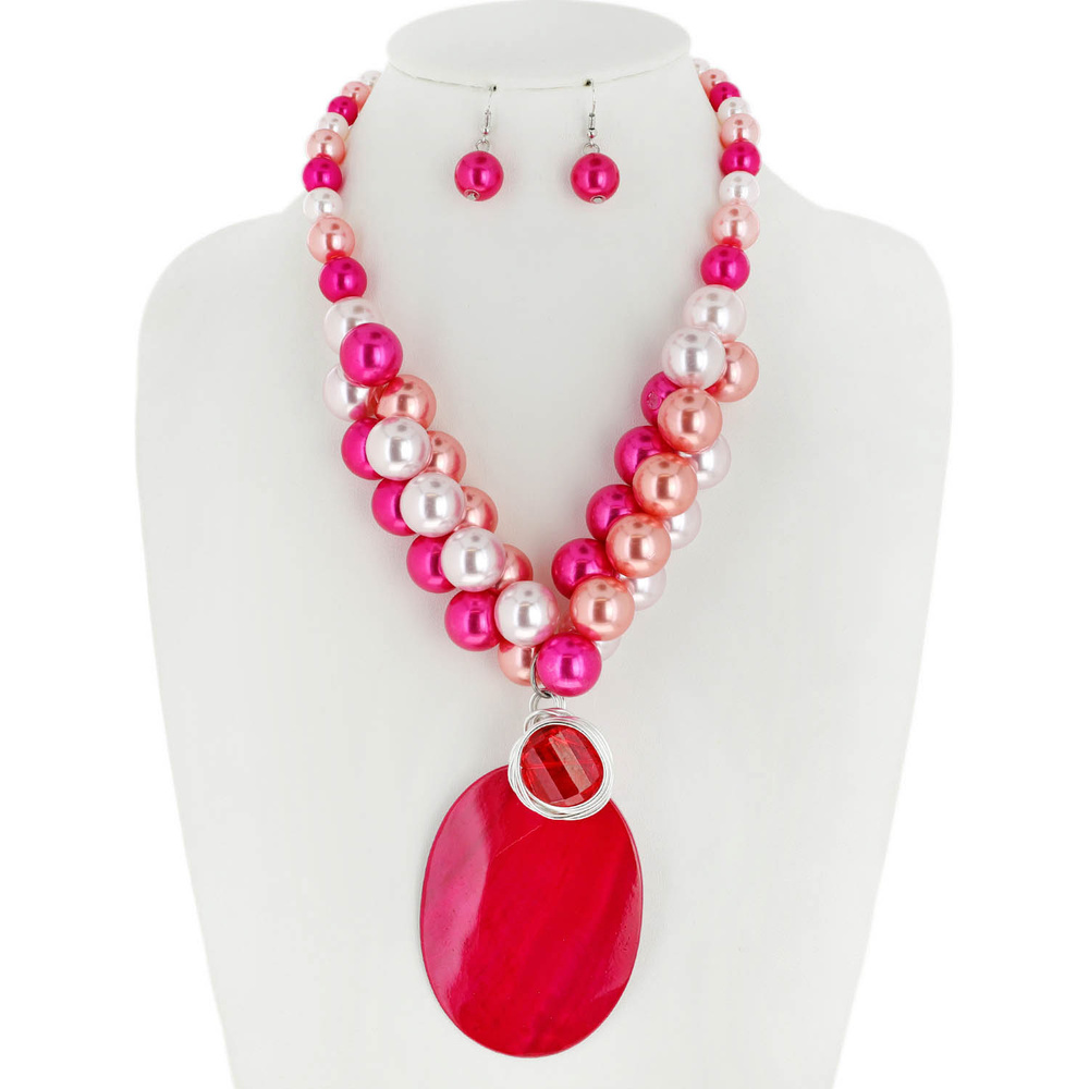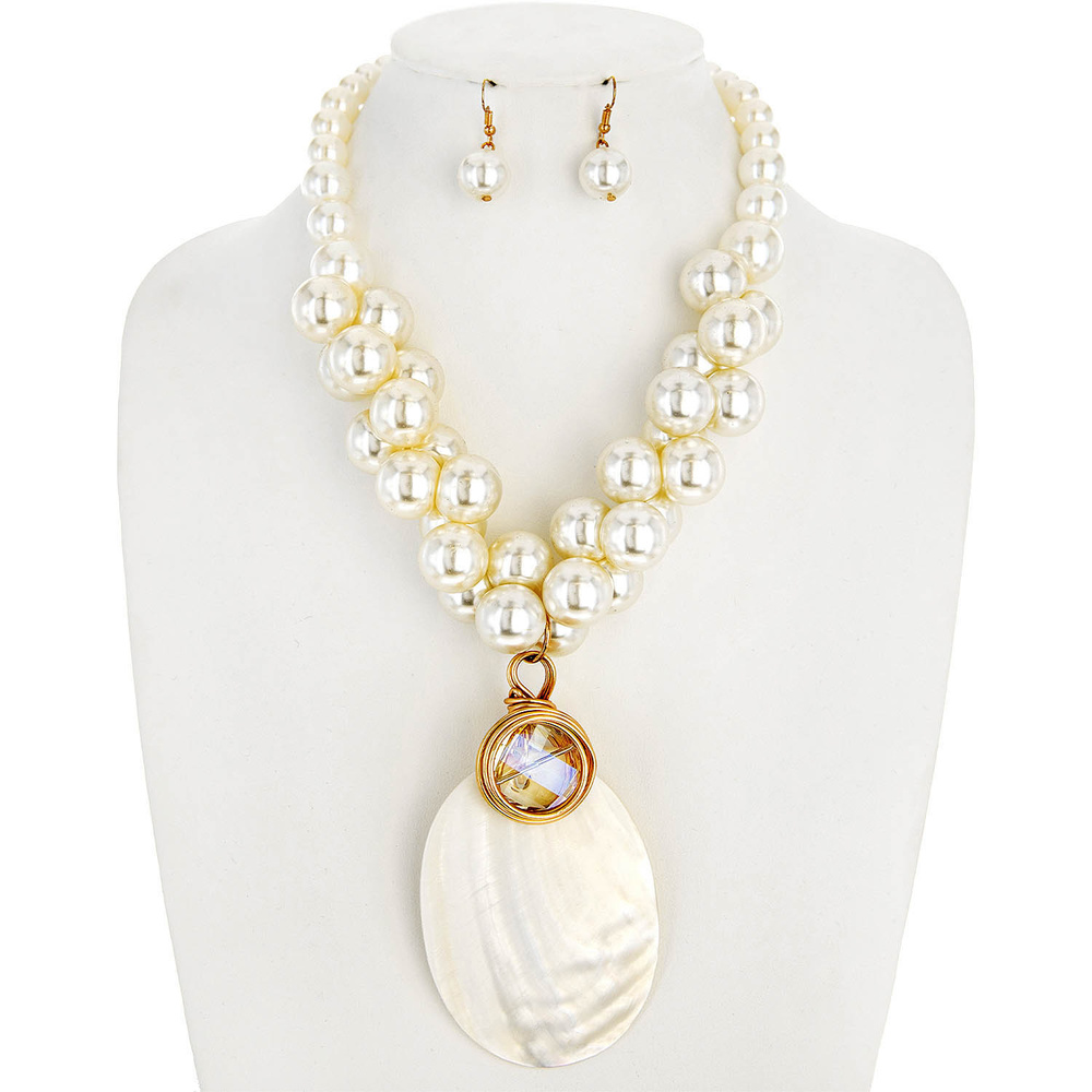 SHALL PENDANT PEARL NECKLACE AND EARRINGS SET