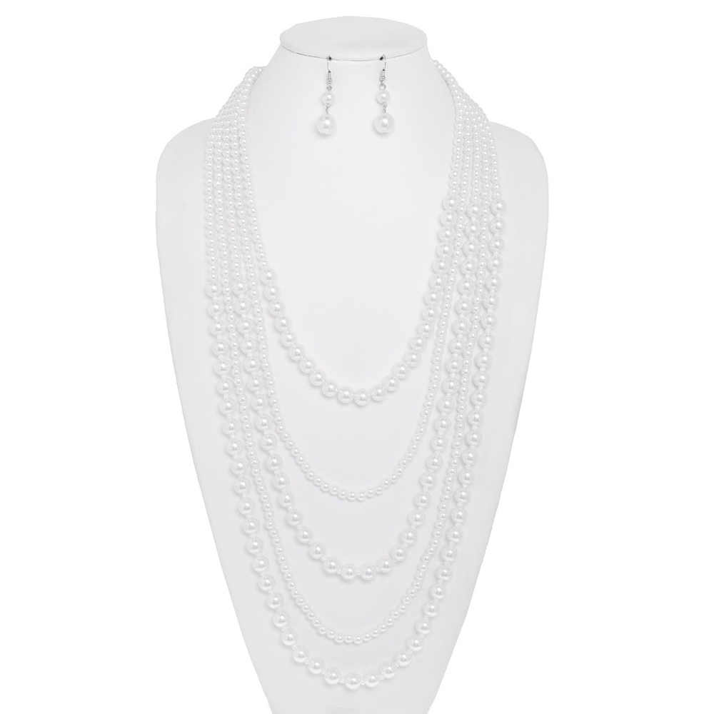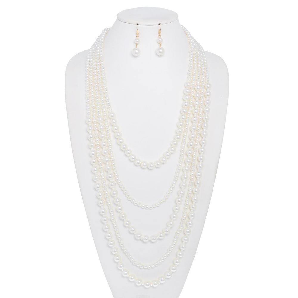 5 Line Pearl Multi Strand Necklace Earring Set