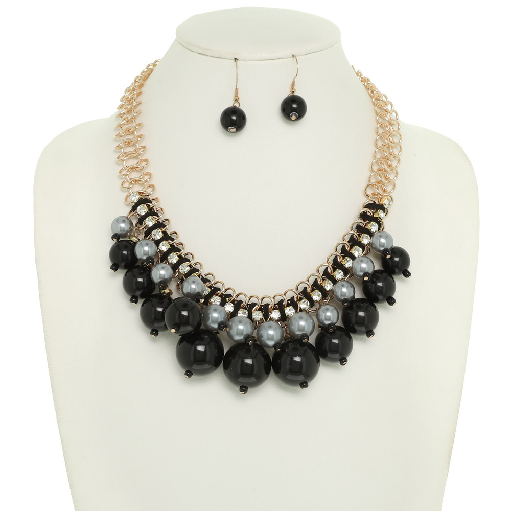 MULTI STRAND CRYSTAL PEARL NECKLACE SET WITH FRENCH HOOK EARRINGS