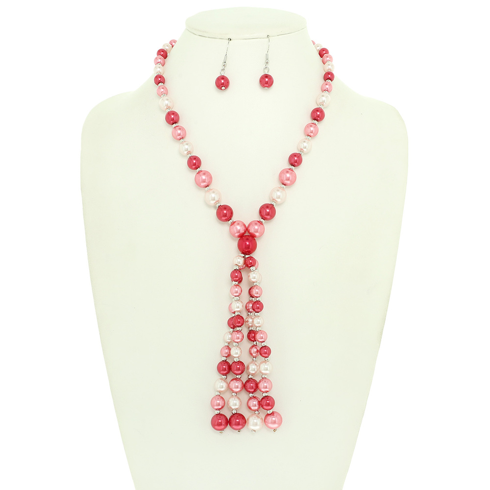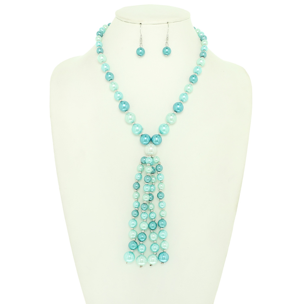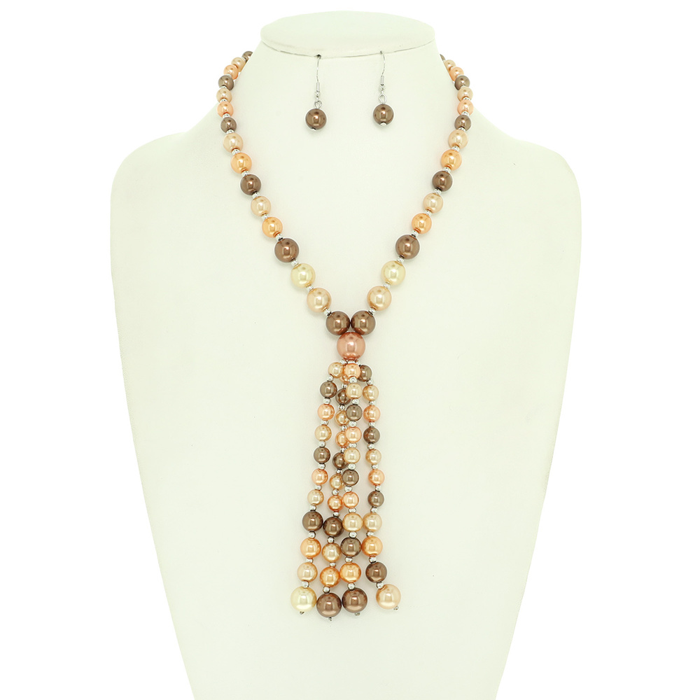 MULTICOLOR PEARL TASSEL NECKLACE AND EARRING SET NECKLACE