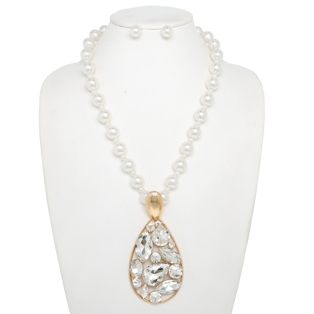 Pearl Teardrop Gemstone Cluster Pendant Necklace Set