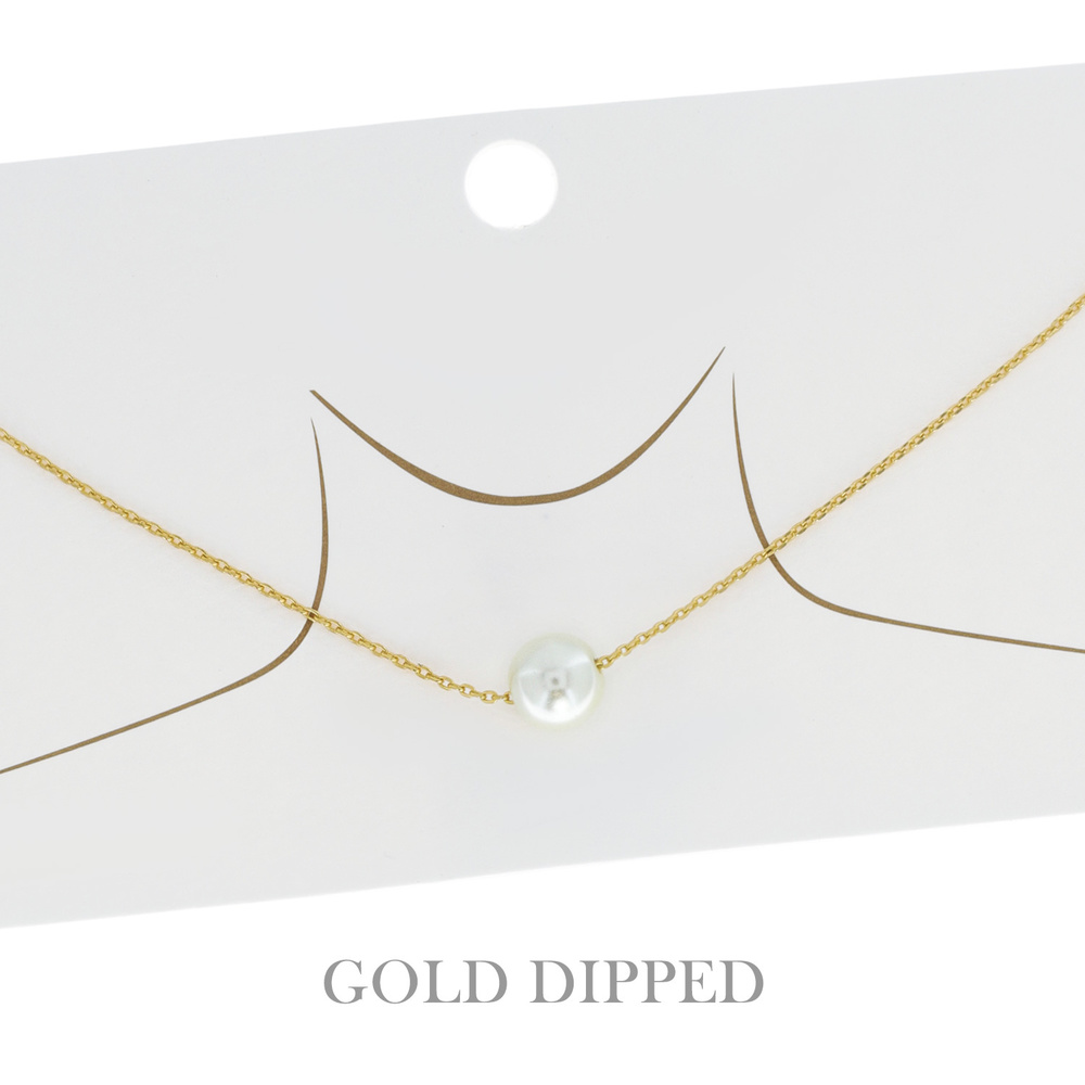 15" Gold Dipped Adjustable Sliding Floating Synthetic Pearl Pendant Necklace