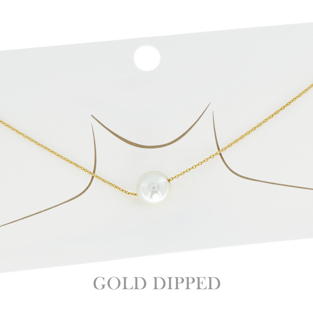 15" Gold Dipped Adjustable Sliding Floating Synthetic Pearl Pendant Necklace