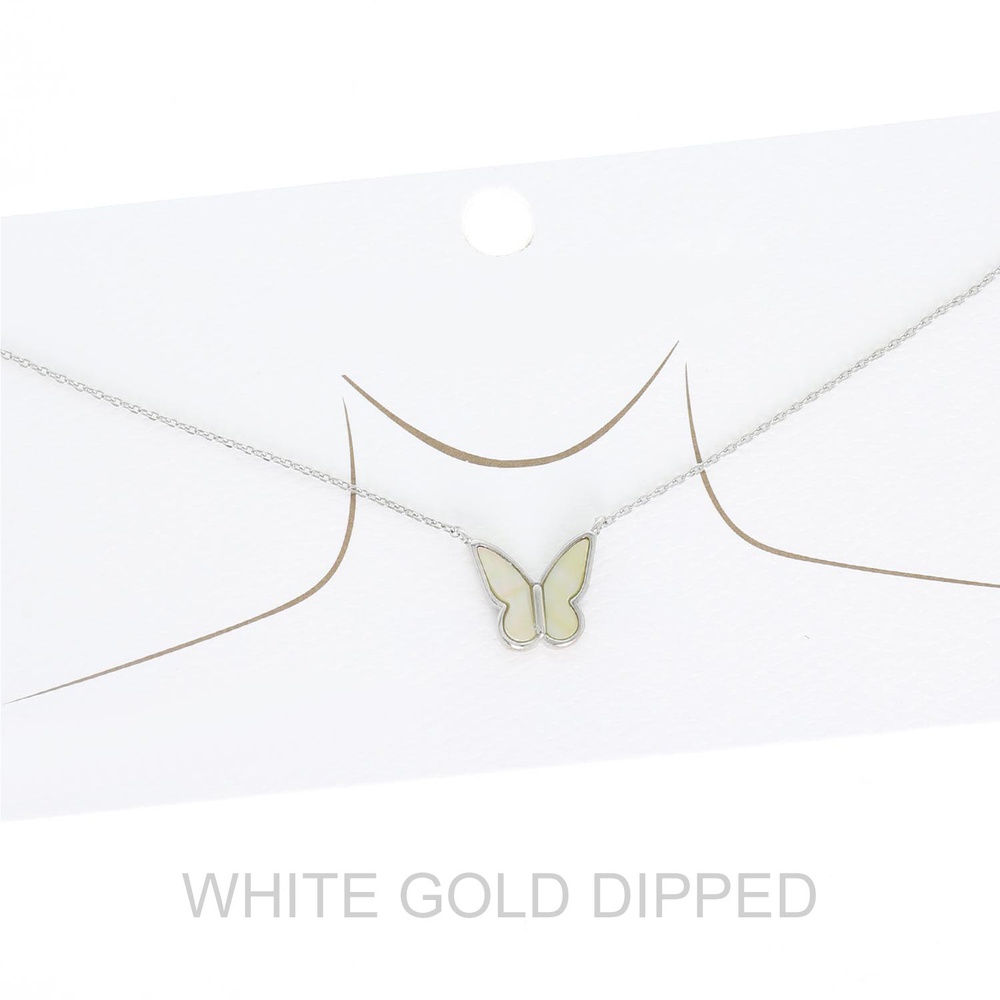 WOMEN'S GOLD DIPPED MOTHER OF PEARL BUTTERFLY ADJUSTABLE CHAIN NECKLACE