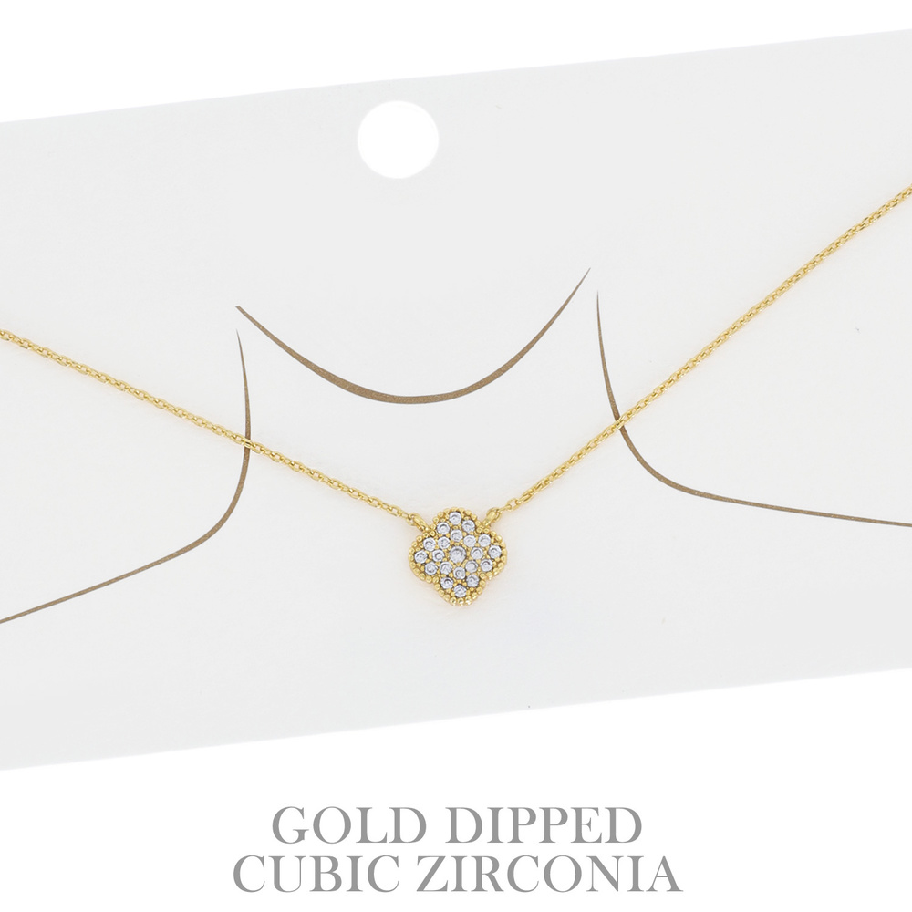 15" QUATREFOIL CUBIC ZIRCONIA PAVE GOLD DIPPED ADJUSTABLE PENDANT NECKLACE