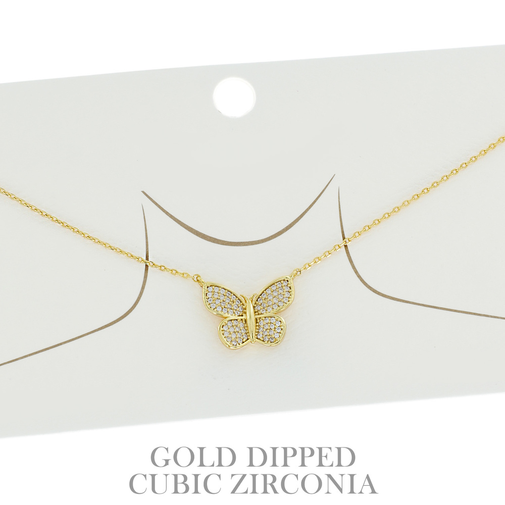 15" GOLD PLATED CUBIC ZIRCONIA PAVE ADJUSTABLE BUTTERFLY PENDANT NECKLACE IN WHITE AND YELLOW GOLD PLATTING made in KOREA