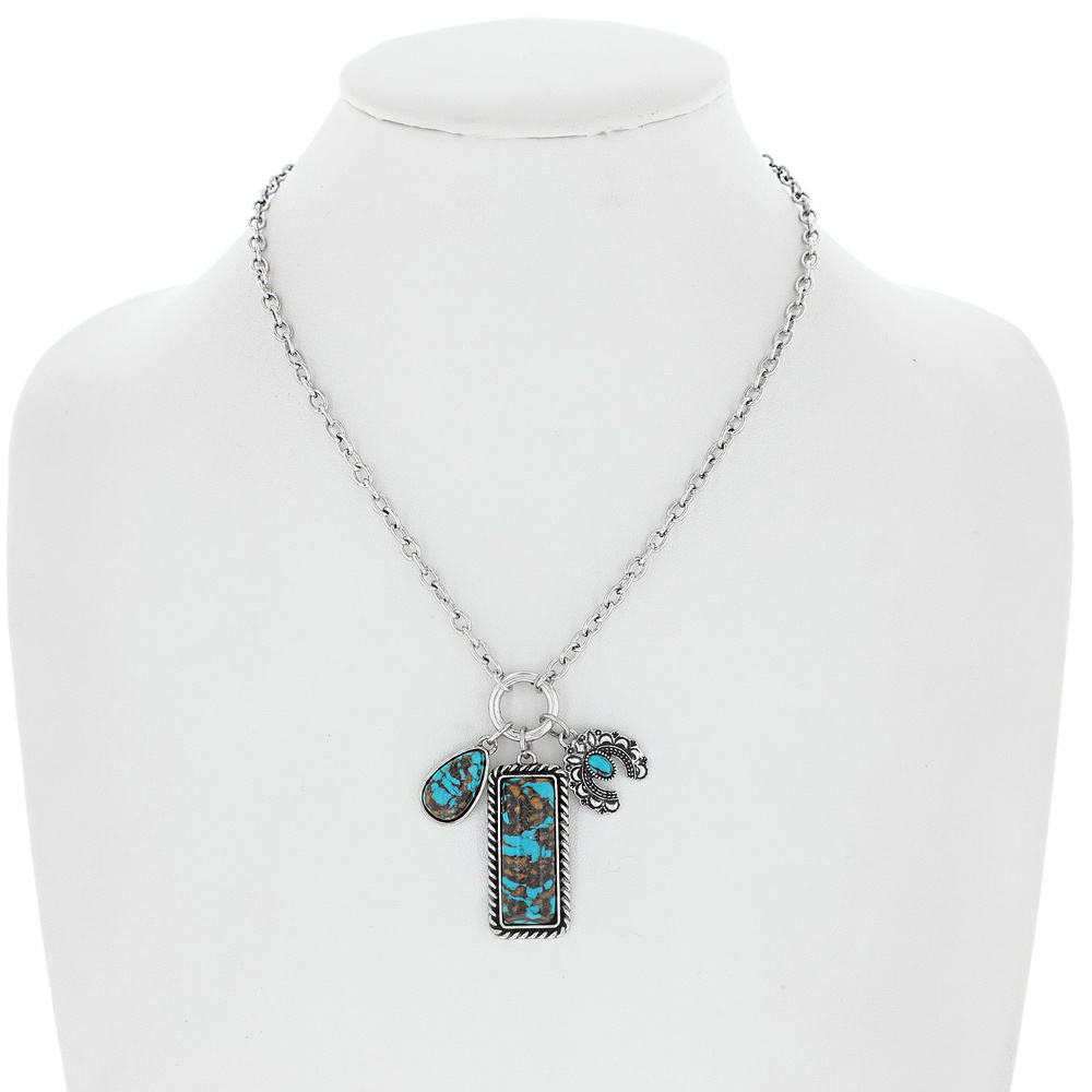 OVAL-WESTERN MULTI CHARM TURQUOISE SEMI STONE ADJUSTABLE PENDANT NECKLACE