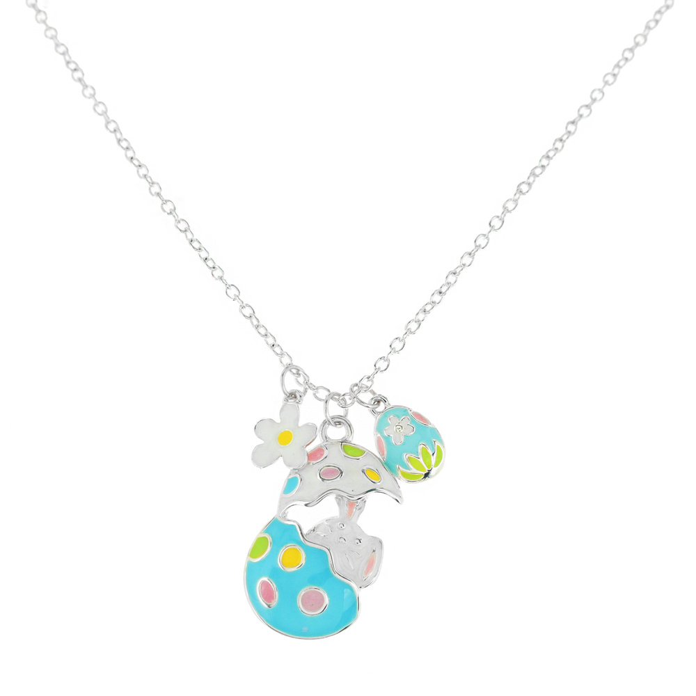 Easter Bunny Egg Enamel Coated Charm Pendant Chain Necklace