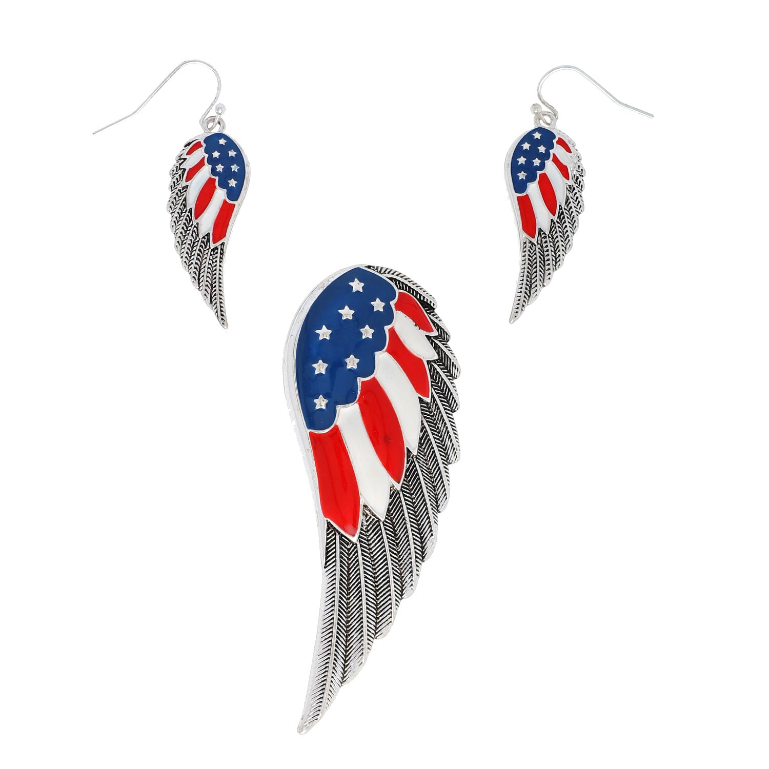 Patriotic Wing Usa Flag Pattern Pendant Earring Set