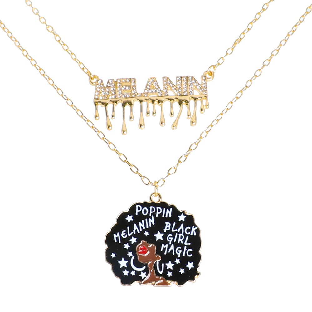 BLACK GIRL MAGIC, MELANIN POPPIN CRYSTAL RHINESTONE ENAMEL COATED MULTI STRANDED ADJUSTABLE PENDANT CHAIN NECKLACE