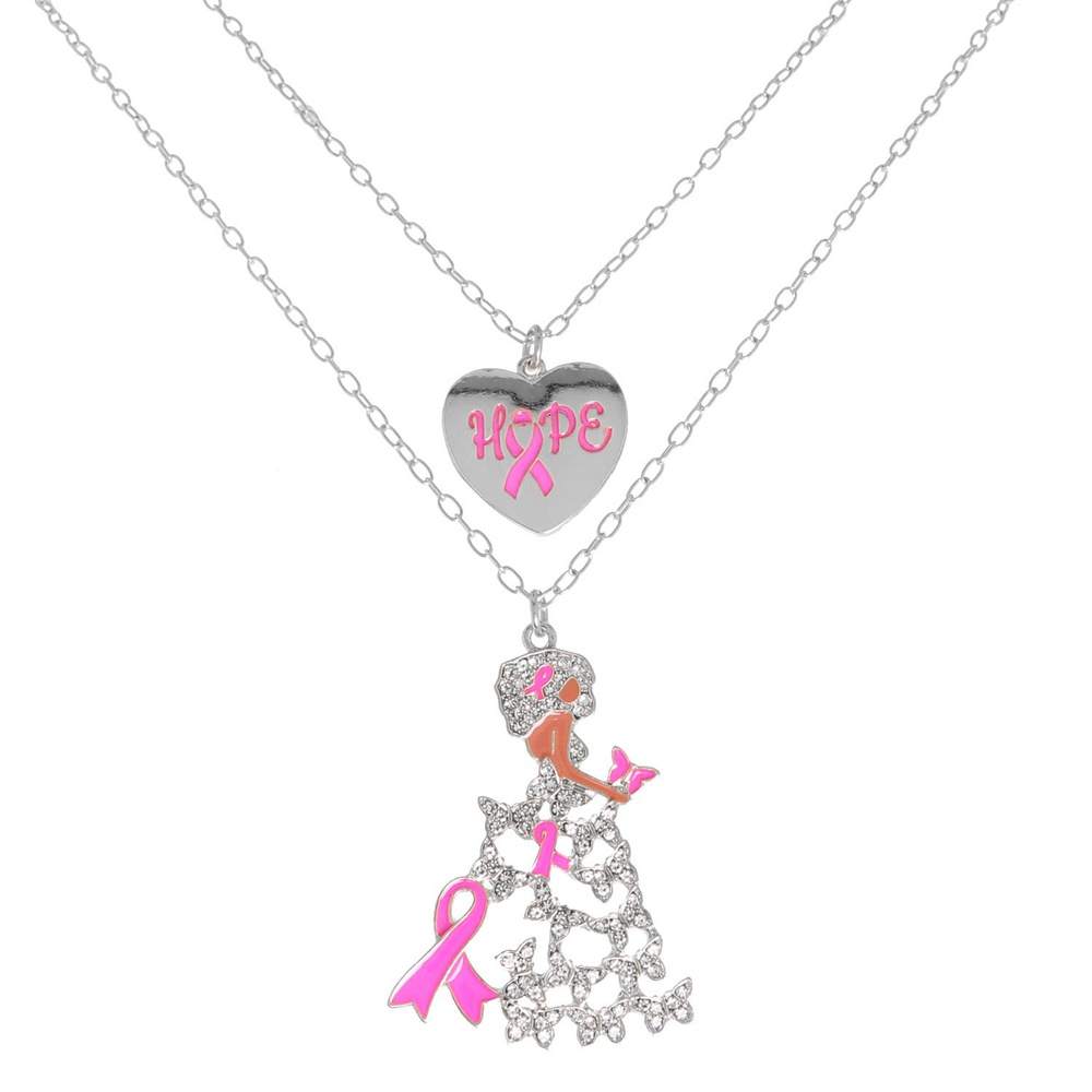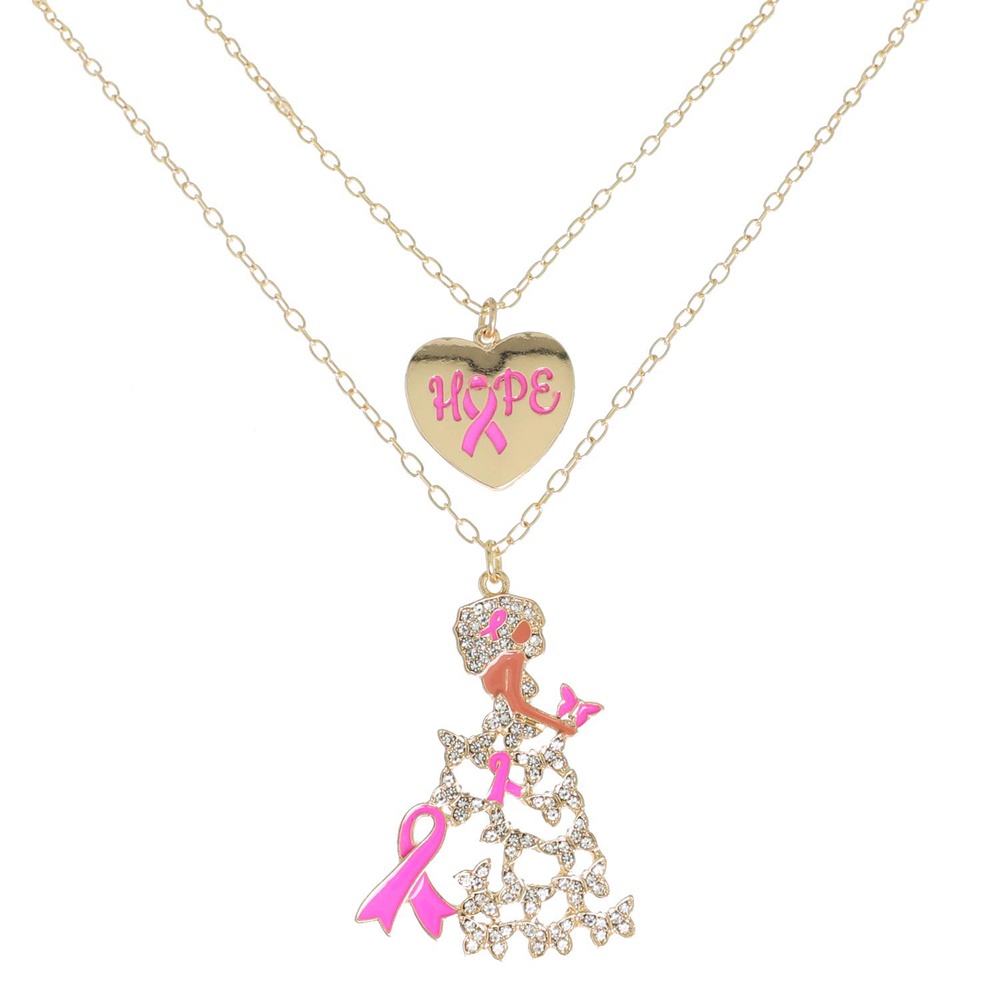 BLACK GIRL MAGIC PINK RIBBON BREAST CANCER AWARENESS CRYSTAL RHINESTONE ENAMEL COATED MULTI STRANDED ADJUSTABLE PENDANT CHAIN NECKLACE