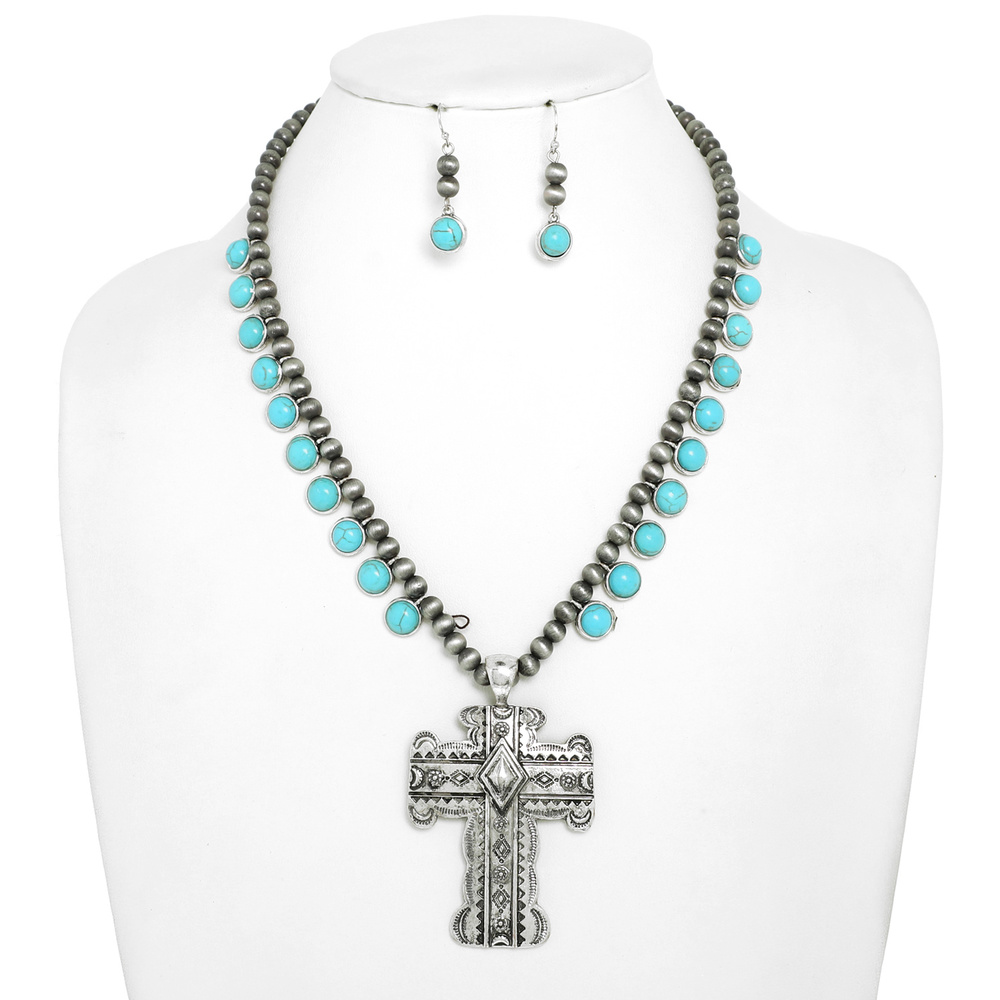 Western Navajo Pearl Beaded Cross Necklace Set