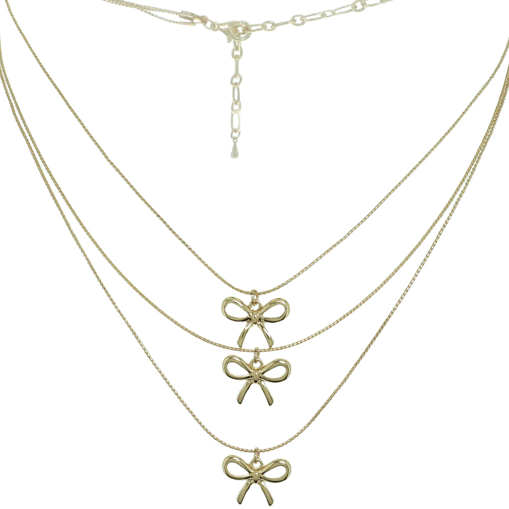 MULTI STRAND BOW PENDANT ADJUSTABLE CHAIN NECKLACE WITH LOBSTER CLAW CLASP
