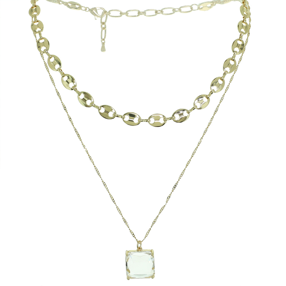 TWO-LAYER CHAIN CRYSTAL PENDANT ADJUSTABLE NECKLACE WITH LOBSTER CLAW CLASP
