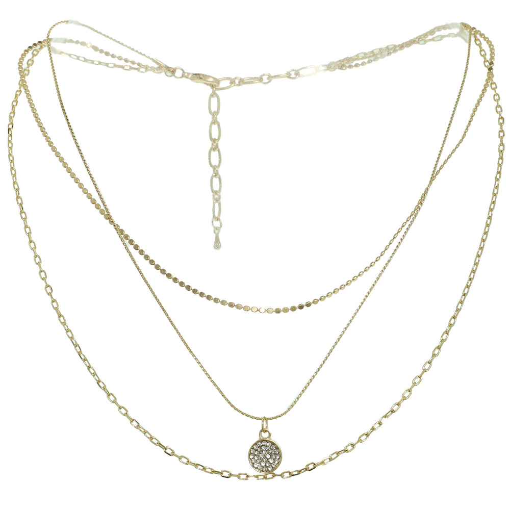 MULTI-LAYERED GOLD-TONE RHINESTONE PAVE DISC PENDANT NECKLACE