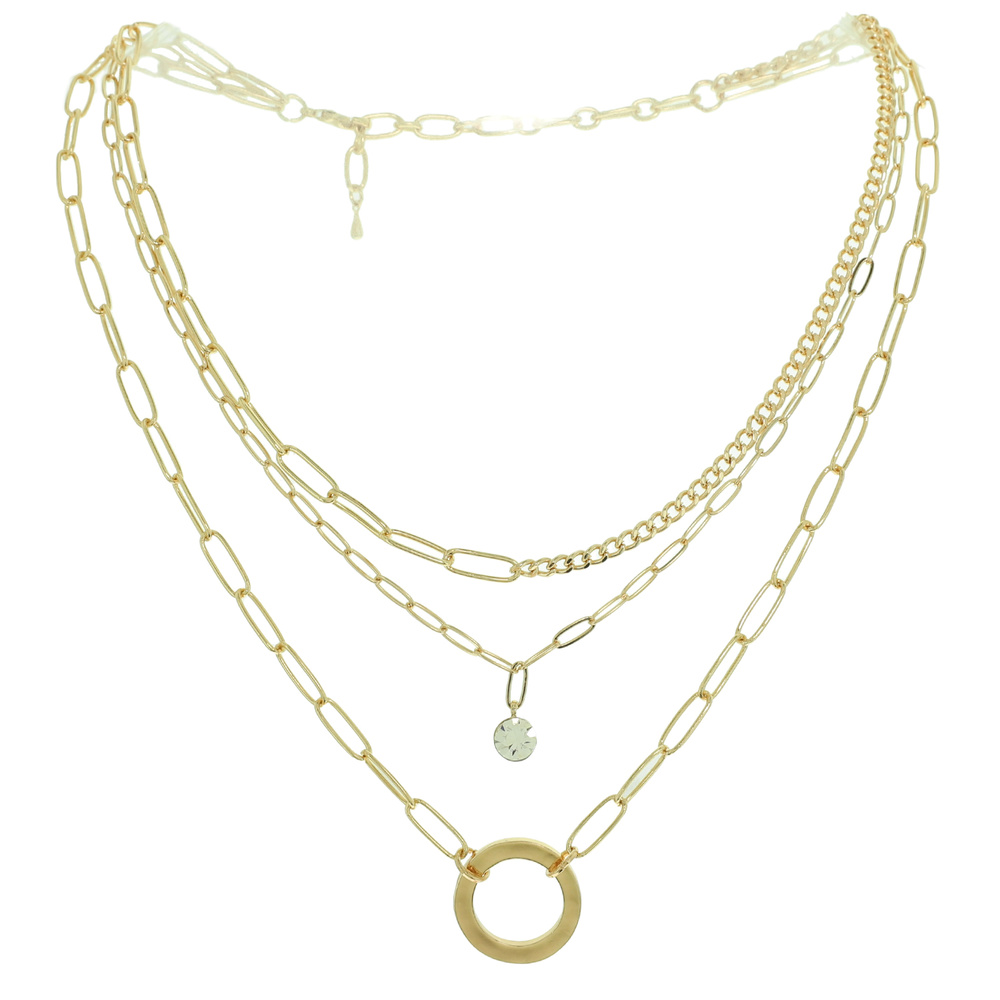MULTI-STRAND SOLITAIRE CRYSTAL BEZEL PENDANT CHAIN NECKLACE