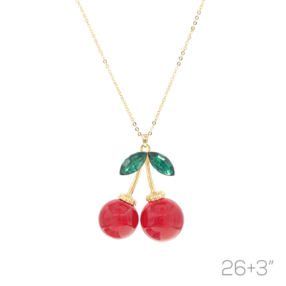 ENAMEL CHERRY PENDANT MATINEE CHAIN NECKLACE