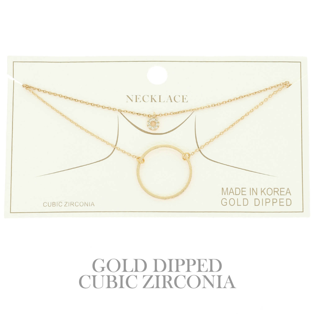 CUBIC ZIRCONIA PAVE ROUND CUT PENDANT CHAIN NECKLACE IN YELLOW GOLD PLATING
