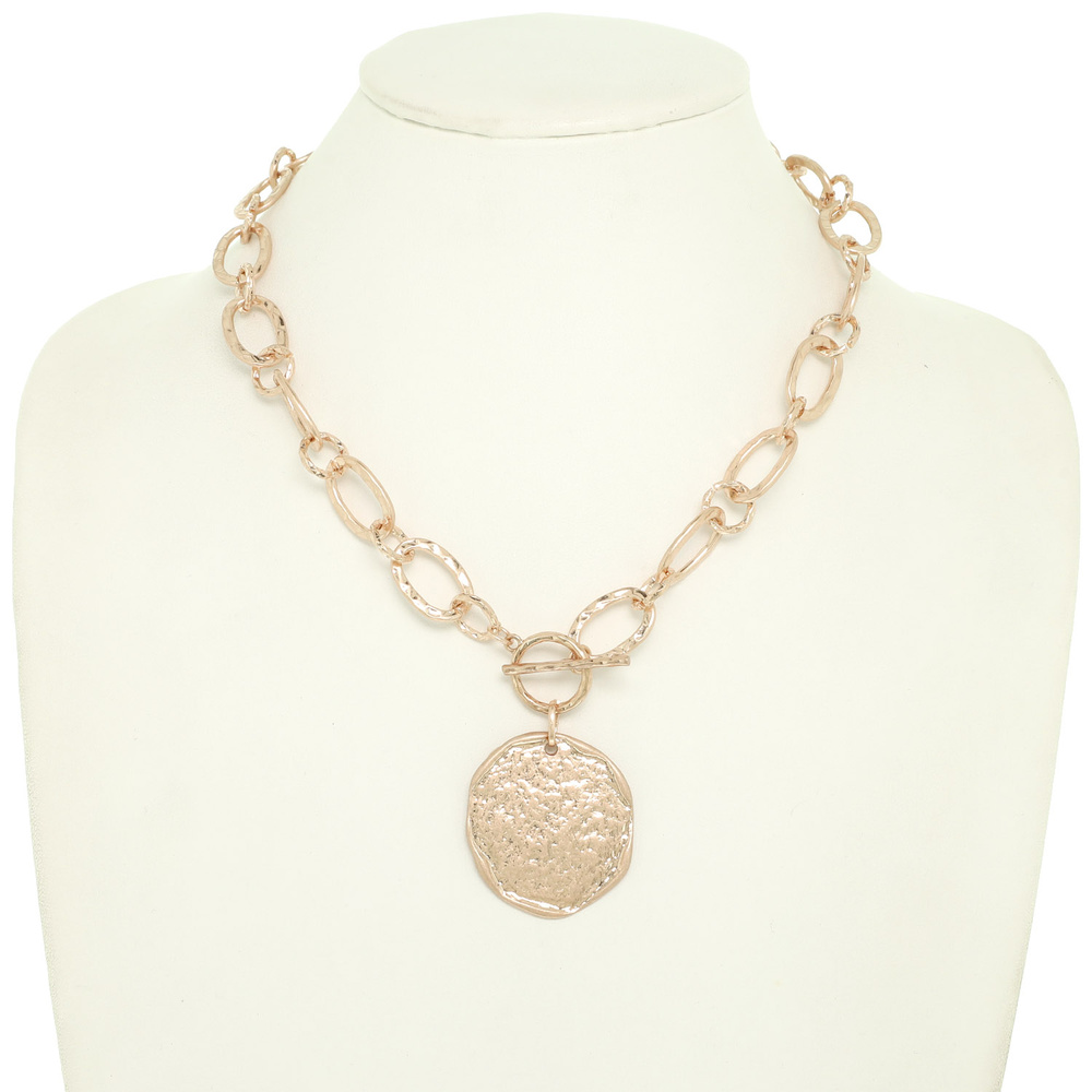 HAMMERED DISC PENDANT TOGGLE CHAIN NECKLACE IN GOLD TONE METAL