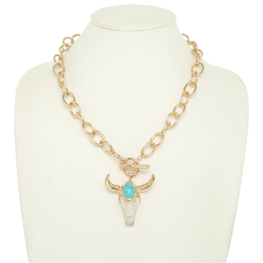 WESTERN STREEHEAD PENDANT NECKLACE WITH TURQUOISE ACCENT