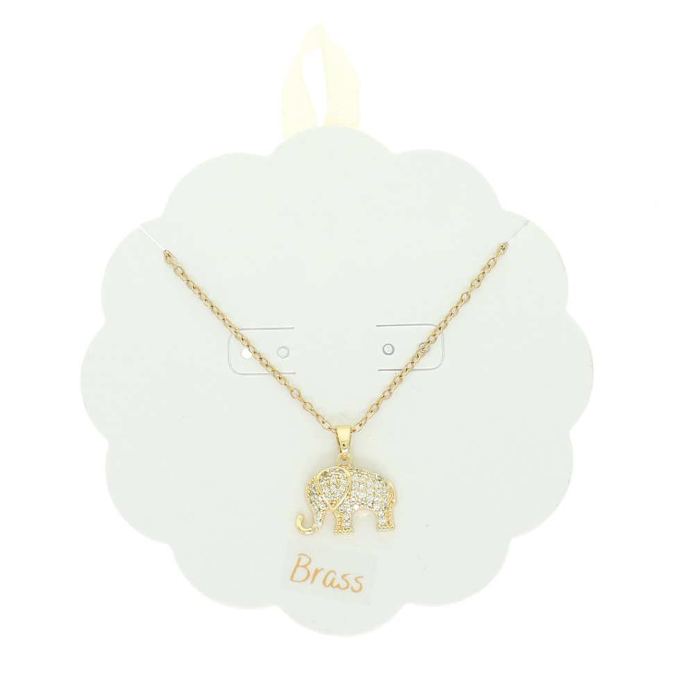 CRYSTAL PAVE ELEPHANT SHAPED PENDANT NECKLACE IN GOLD TONE METAL