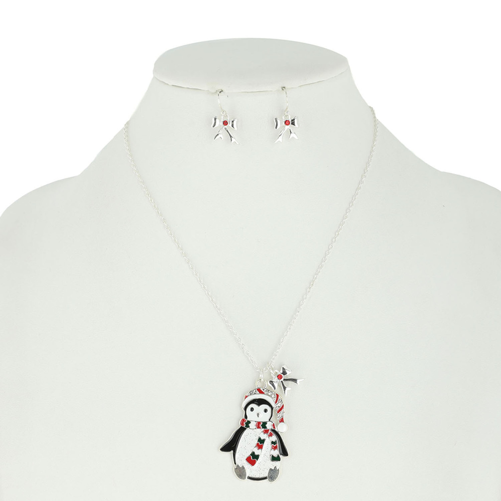 CHRISTMAS SANTA PENGUIN PENDANT NECKLACE AND EARRINGS SET