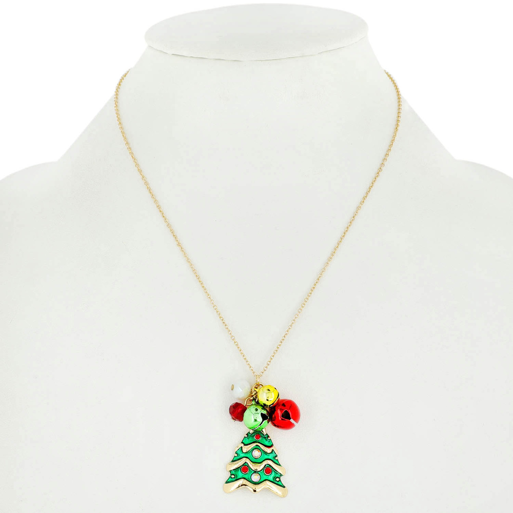Christmas Tree Jingle Bell Pendant Necklace X Mas Seasonal Holiday Jewelry